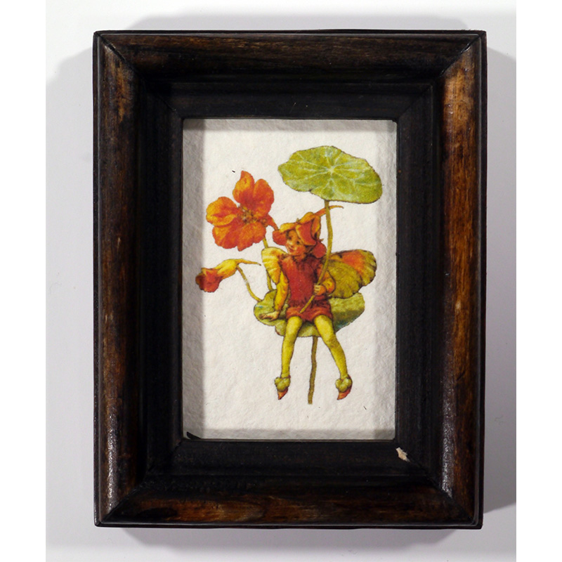Merített papírkép antikolt képkeretben 5 x 7 tündéres sorozat