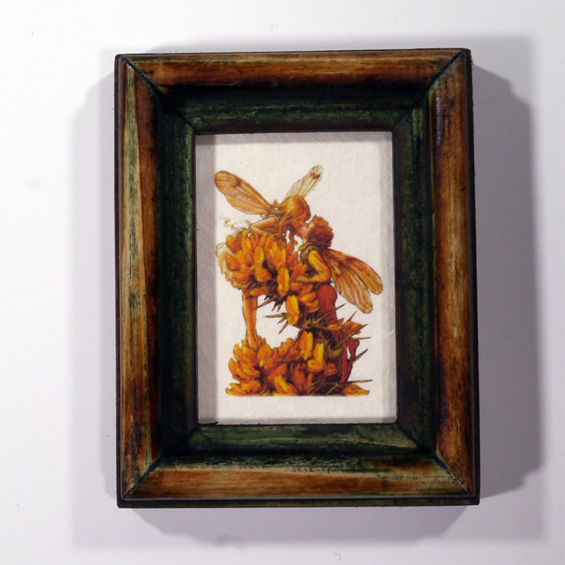 Merített papírkép antikolt képkeretben 5 x 7 tündéres sorozat