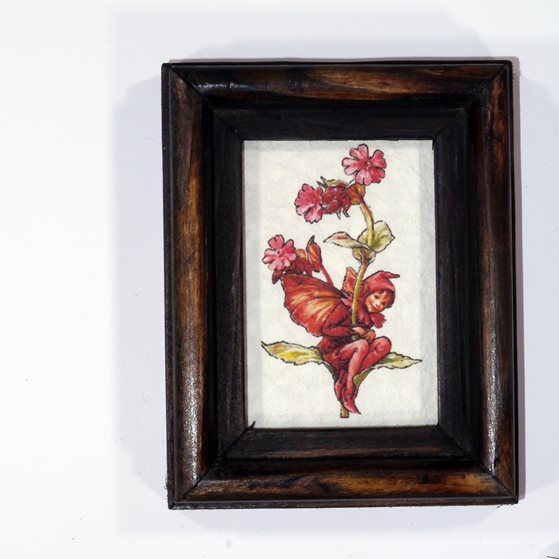 Merített papírkép antikolt képkeretben 5 x 7 tündéres sorozat