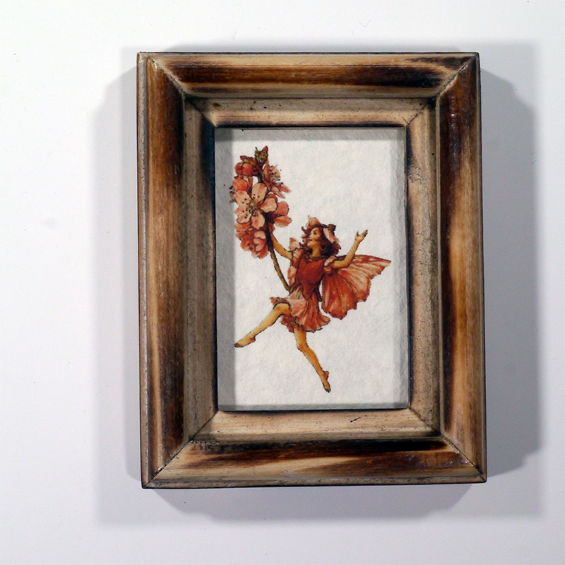 Merített papírkép antikolt képkeretben 5 x 7 tündéres sorozat