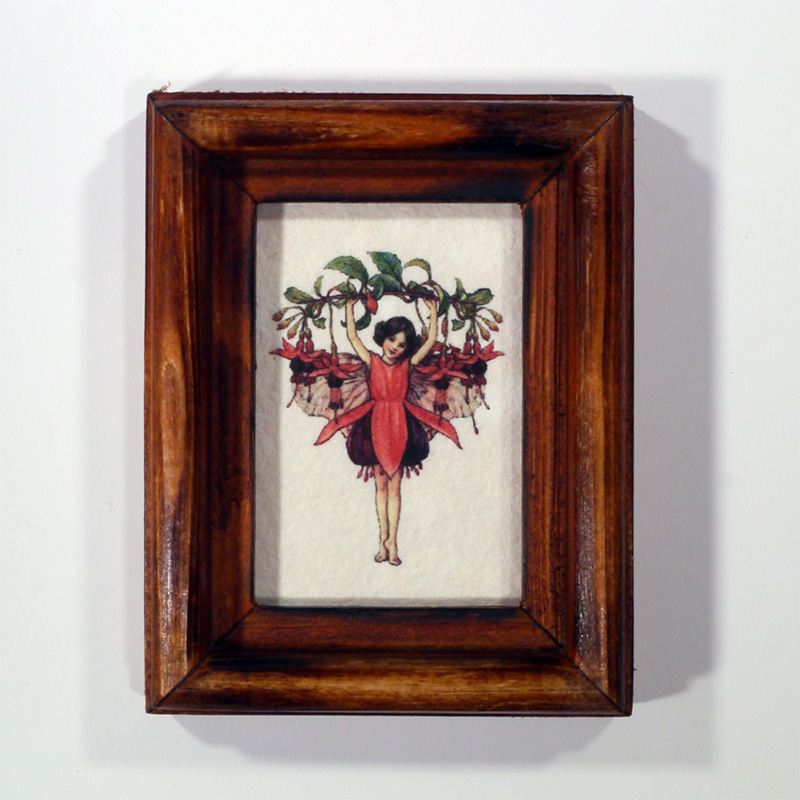 Merített papírkép antikolt képkeretben 5 x 7 tündéres sorozat