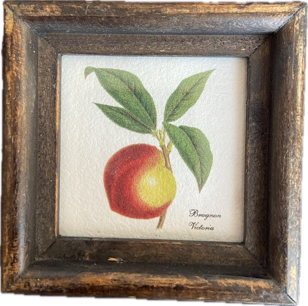 Merített papírkép antikolt képkeretben 6,5 x 6,5 gyümölcssorozat A kép mérete: 6,5 x 6,5 cm, teljes méret: 9 x 9 cm