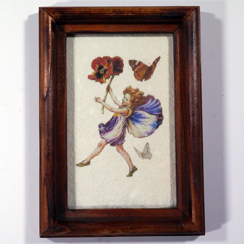 Merített papírkép antikolt képkeretben 7 x 11 tündéres sorozat