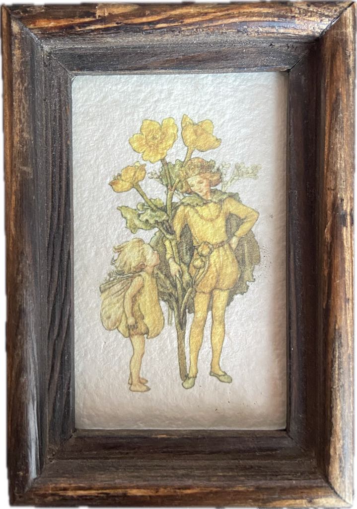 Merített papírkép antikolt képkeretben 7 x 11 tündéres sorozat