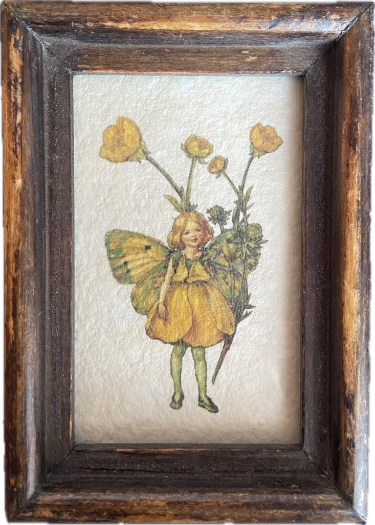 Merített papírkép antikolt képkeretben 7 x 11 tündéres sorozat