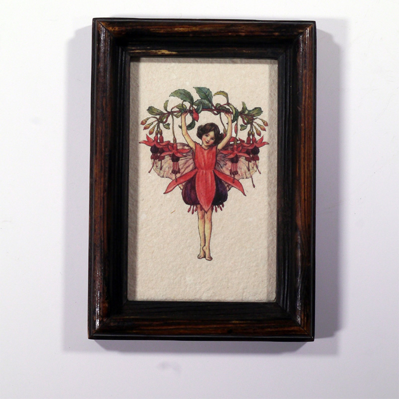 Merített papírkép antikolt képkeretben 7 x 11 tündéres sorozat