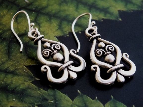 Áldott állapot fülbevaló (rézzel bevont) A díszítmény mérete: 16×25 mm; felület: antikolt, ezüstözött; színváltozat: rézzel bevont; alapanyag: spiáter.