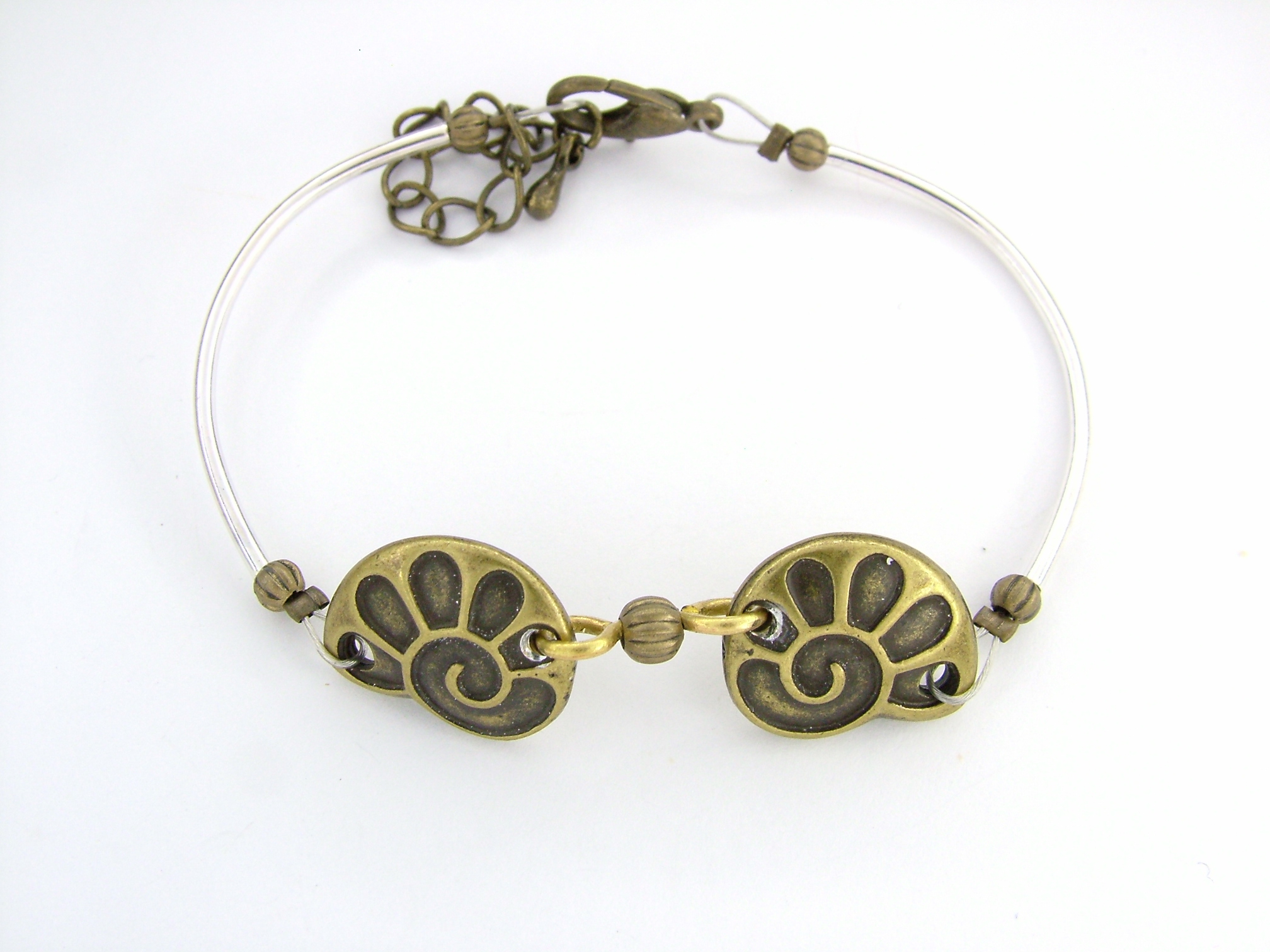 Csigaházas karkötő (rézzel bevont). A díszítmény szélessége: 12 mm. Alapanyaga: spiáter.