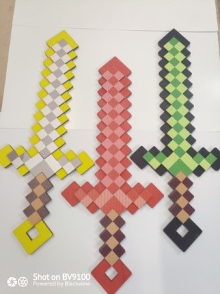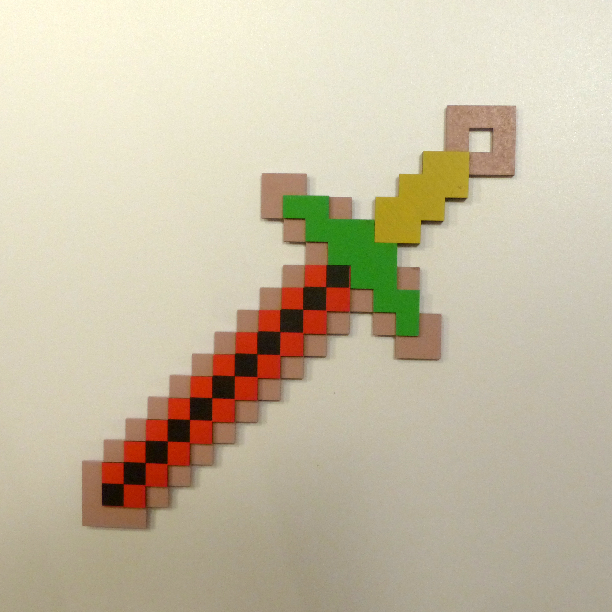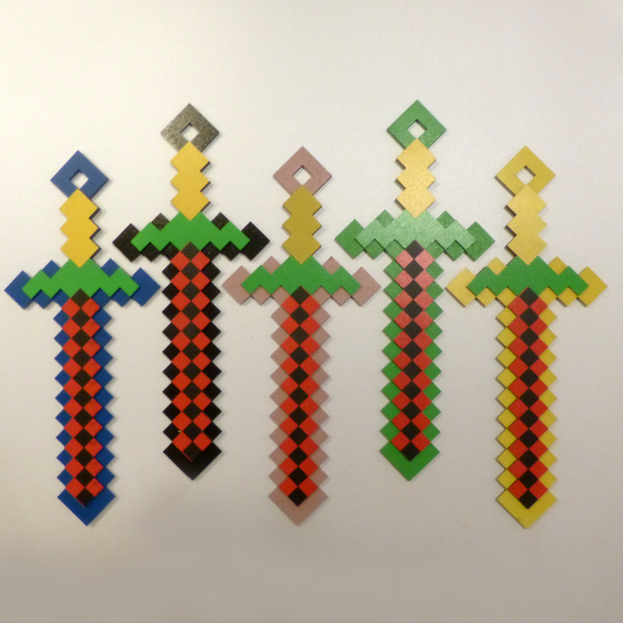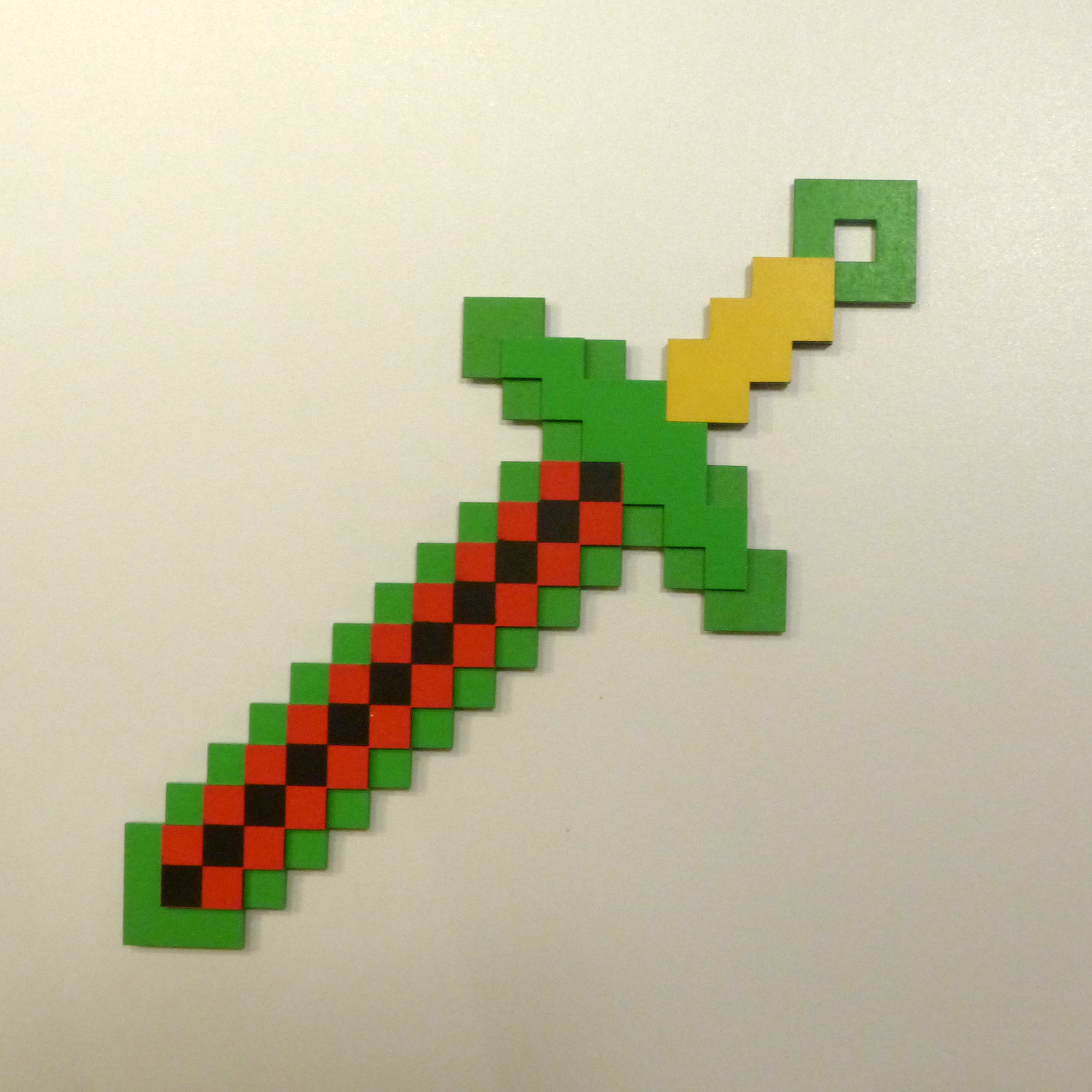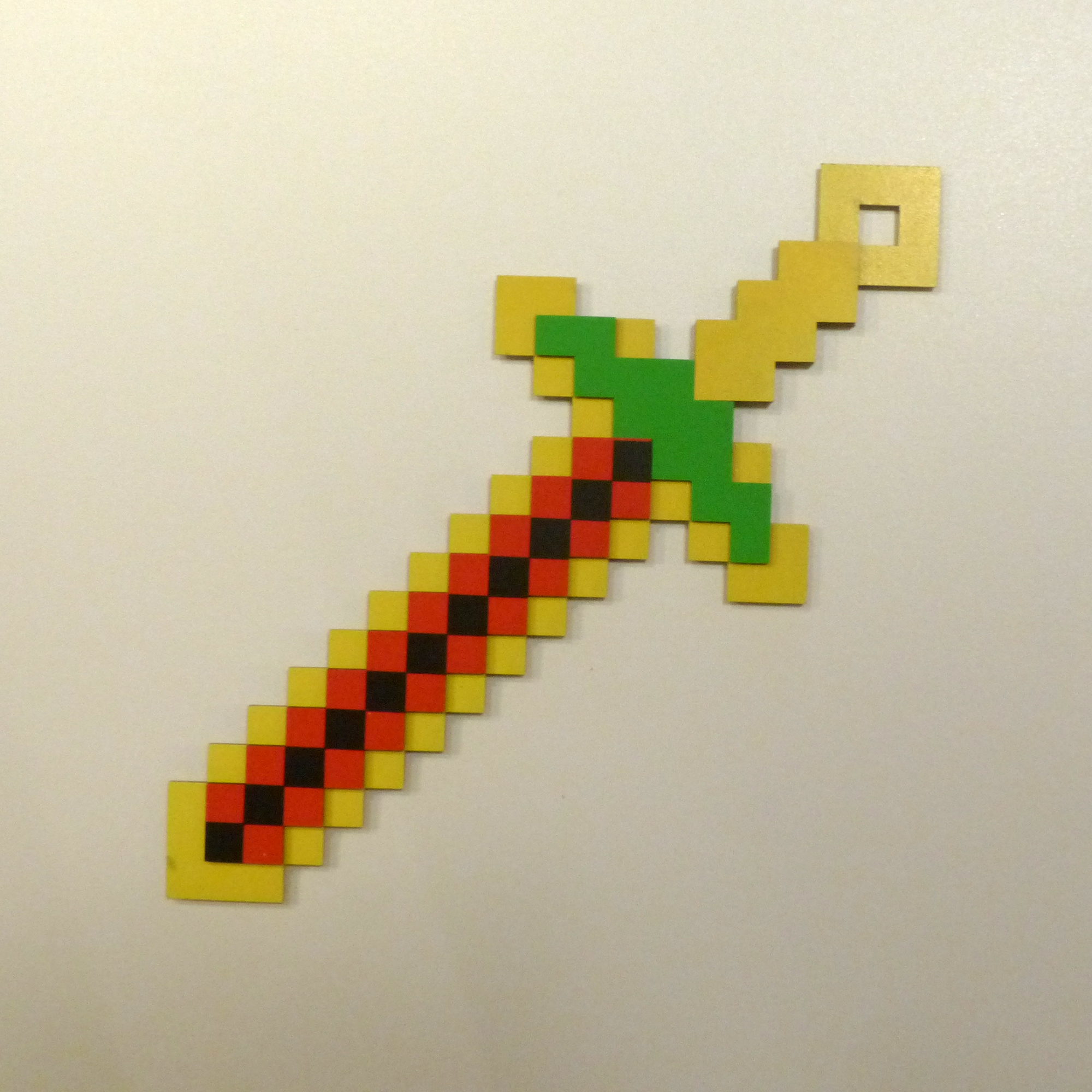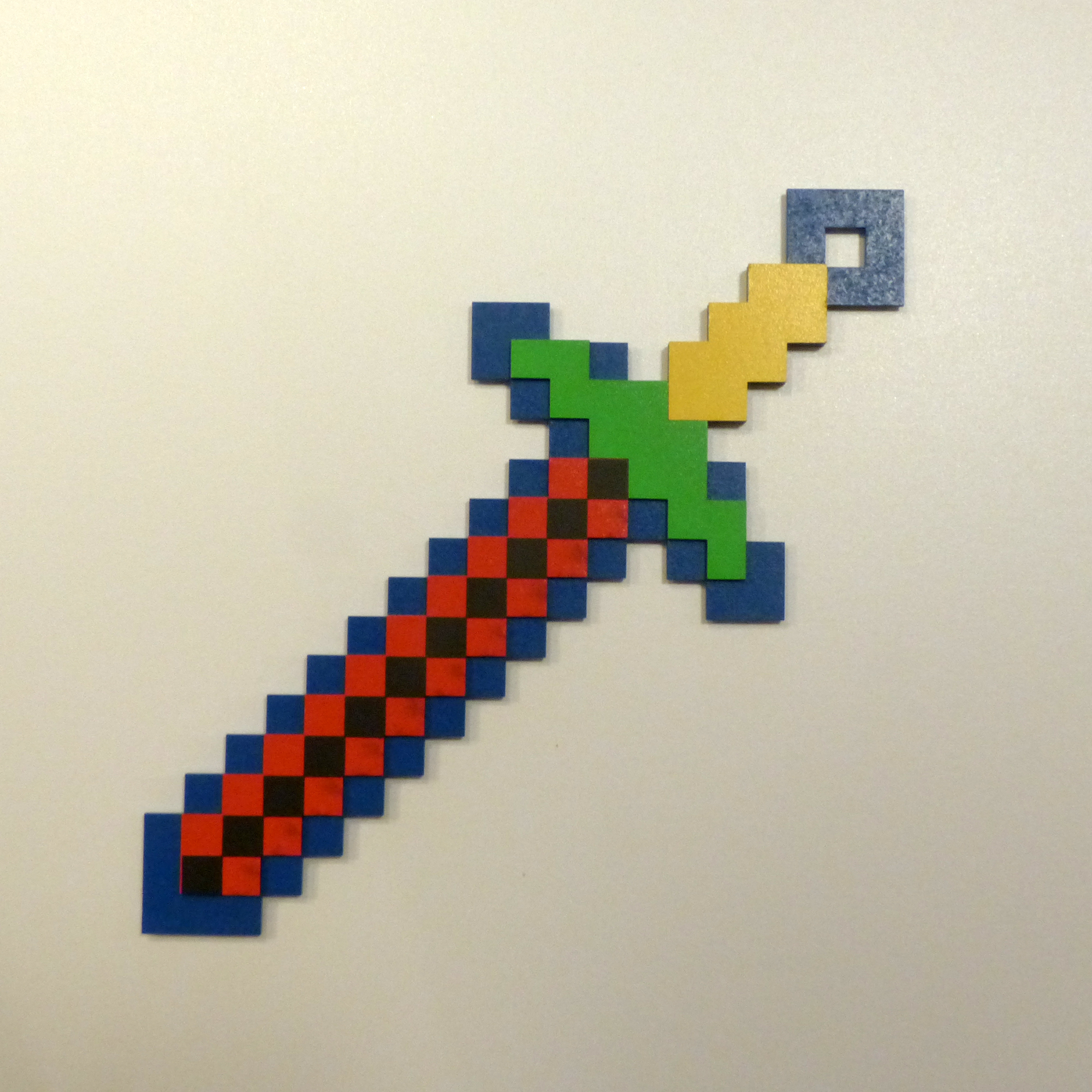 Minekraft típusú kard diamond névre keresztelve, színes, mérete: 41 cm hosszú.