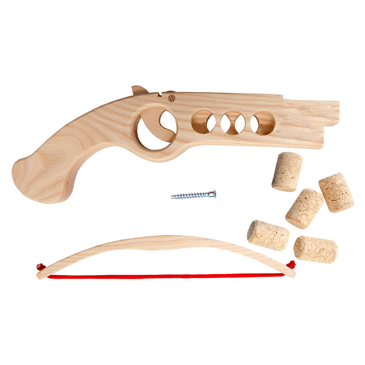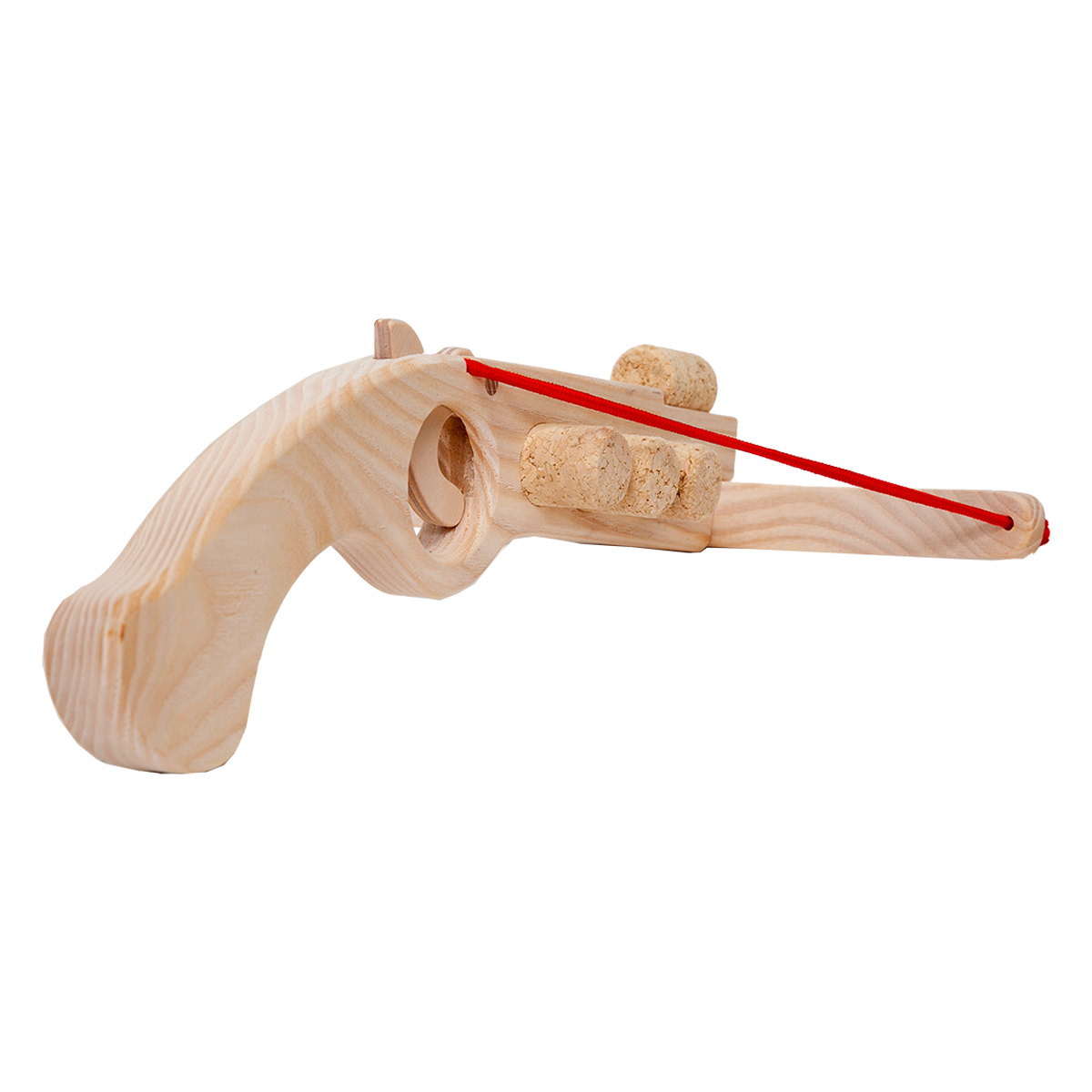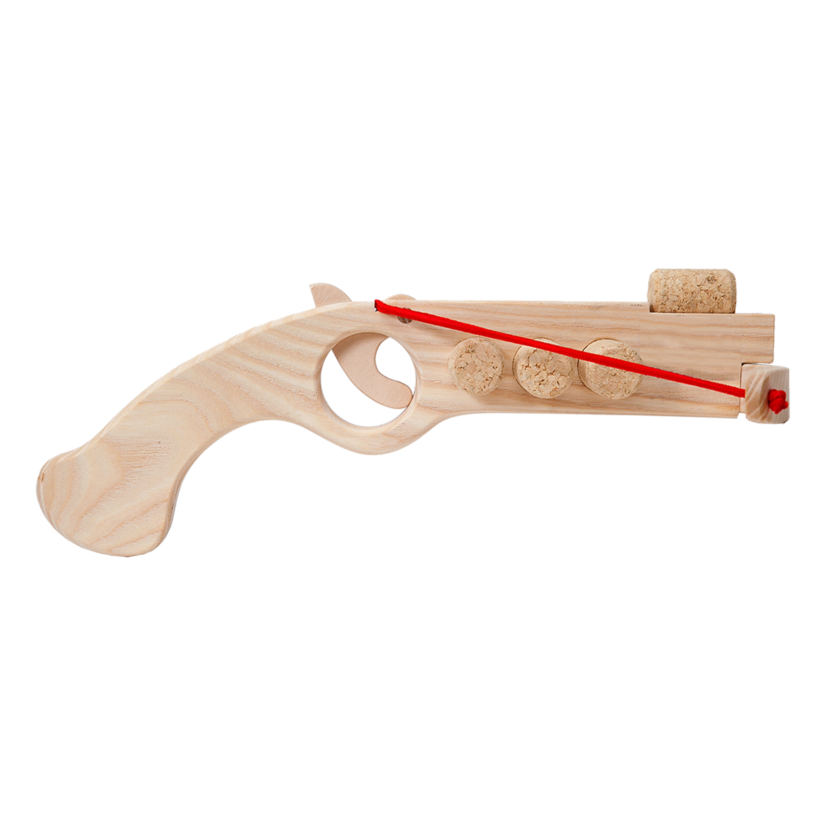 Ez az igényesen megmunkált ötletes játék 5 „tölténnyel” kapható. A ” lövedékek hatótávolsága” 4-5 méter. Kirándulások és kerti mulatságok kihagyhatatlan kelléke, a célbalövés mesterségének elsajátításához ajánljuk.