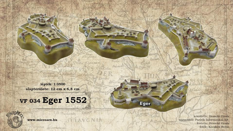 Magyar várak kicsiben sorozat, Eger vára vármakett 1552, alapterülete: 12 cm x 6,8 cm.