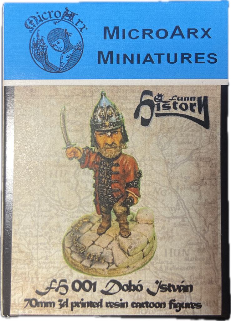 „Funny History” karikatúra figura sorozat híres magyar történelmi személyekről, katonákról. Festetlen műgyanta makett. Méret: 70 mm. Anyaga: műgyanta, festetlen szürke, szereletlen.