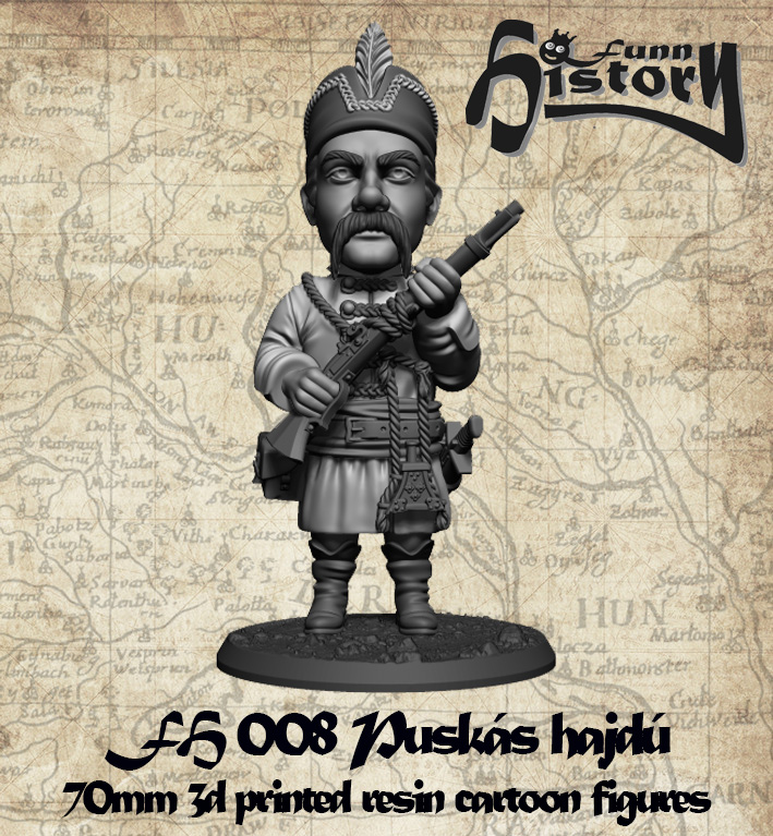 „Funny History” karikatúra figura sorozat (70 mm, festetlen, szereletlen) – puskás hajdú
