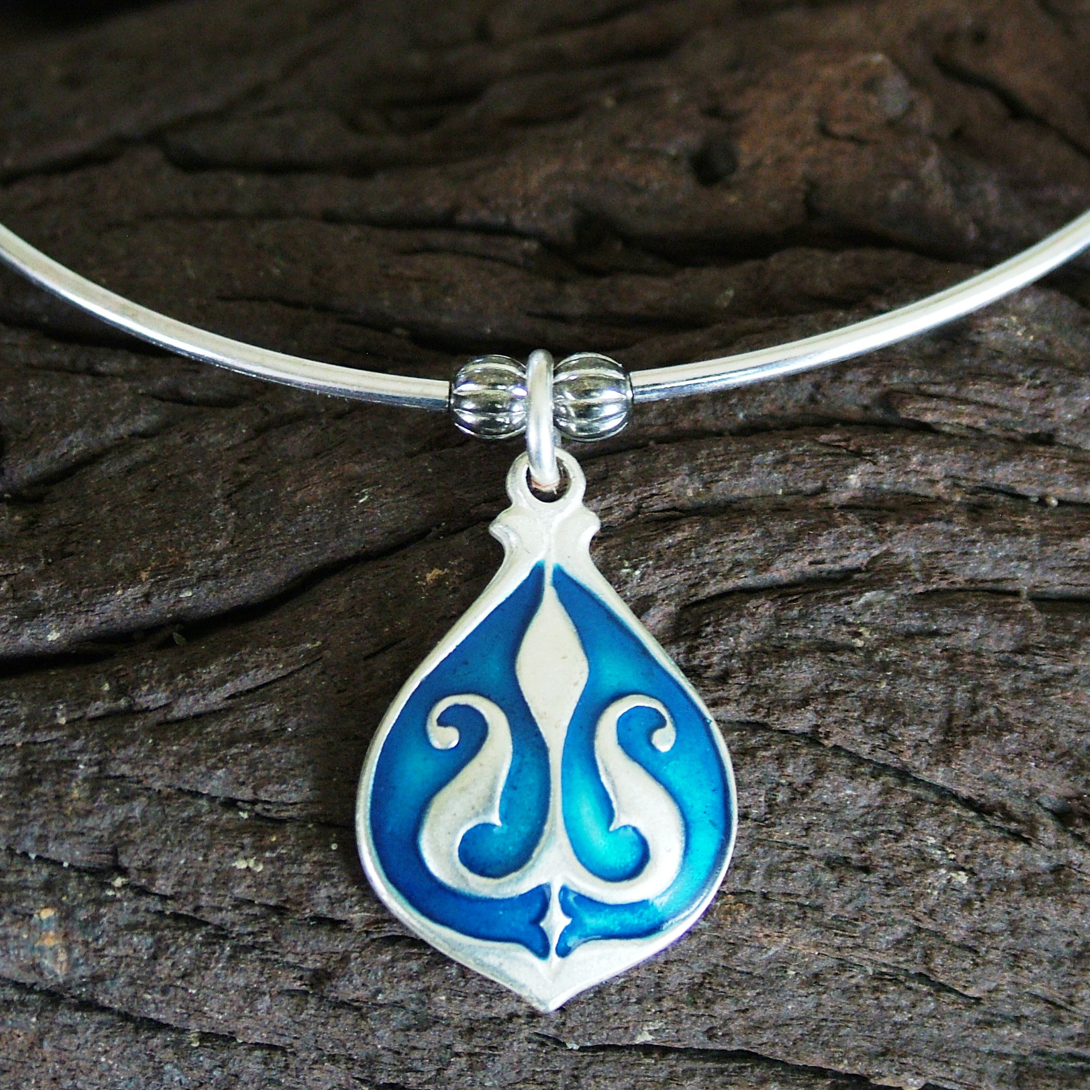 Kék liliomos nyakék A medál mérete: 25×15 mm; a nyakék hossza: (standard) 40 cm; felület: antikolt, ezüstözött, tűzzománc; színváltozat: ezüstözött, kék; alapanyag: spiáter.