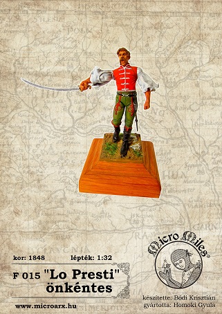Történelmi figura sorozat híres magyar történelmi személyekről, katonákról. Festetlen műgyanta makett (szürke színű, szétszerelt állapotban). Méret: 54 mm. Lépték: 1:32 (A kép illusztráció.)