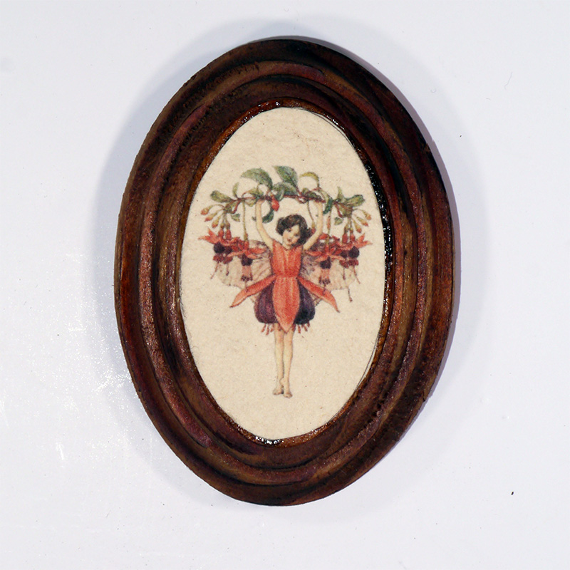 Merített papírkép antikolt képkeretben Ovális kiskép tündéres sorozat, a képkeret mérete: 6 x 8 cm (szél/mag), a merített papírkép mérete: 3,5 x 5,5