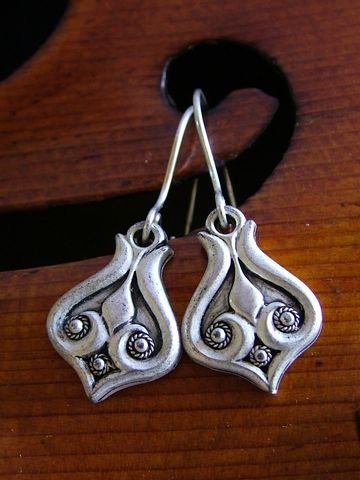 Szemes tulipán fülbevaló (ezüstözött) A díszítmény mérete: 20×15 mm; felület: antikolt, ezüstözött; színváltozat: ezüstözött; alapanyag: spiáter.