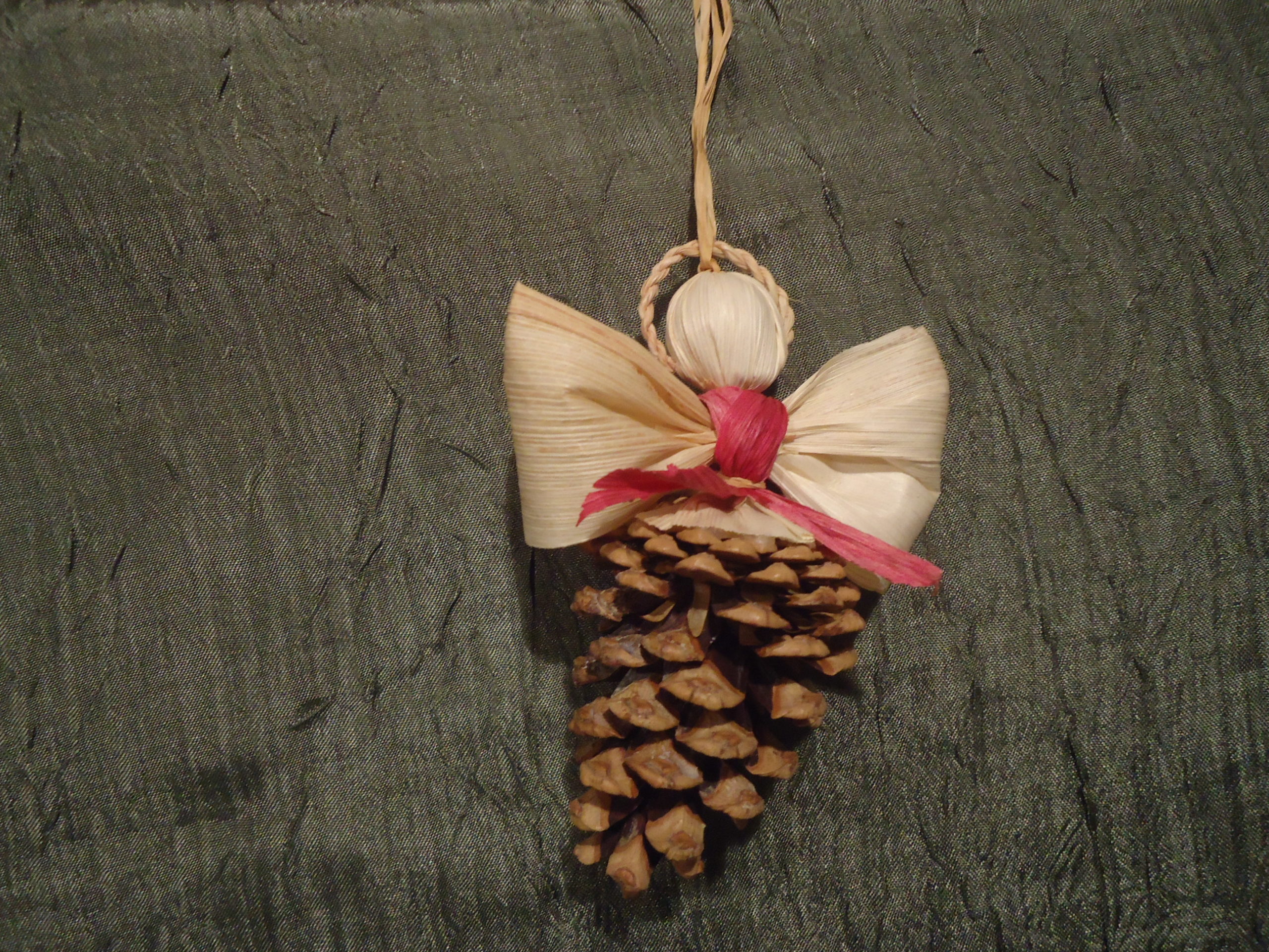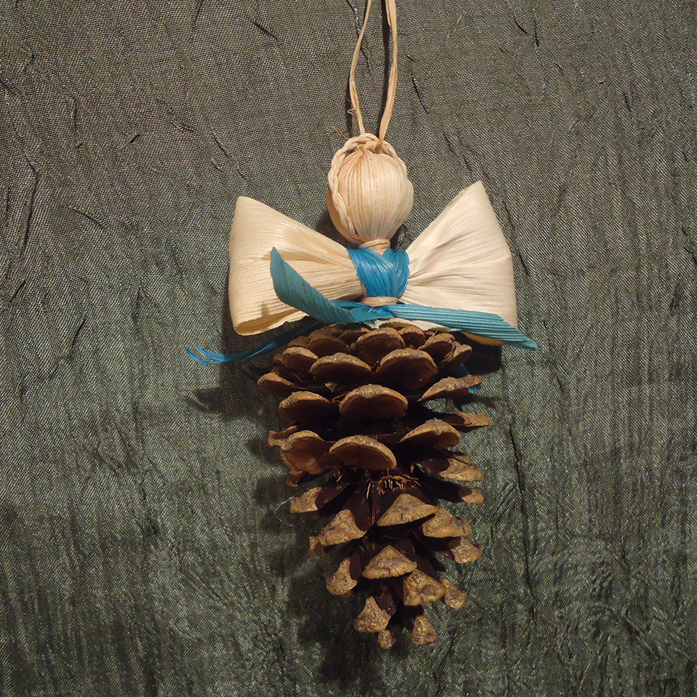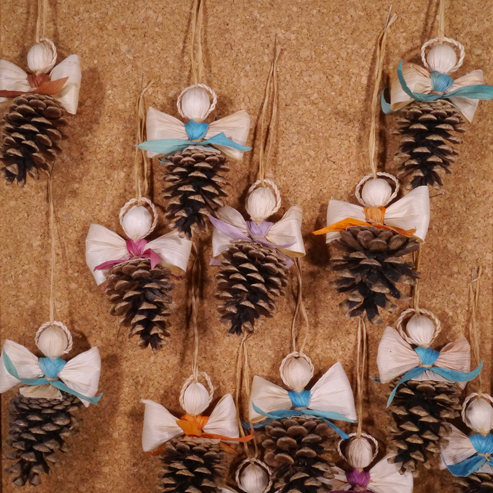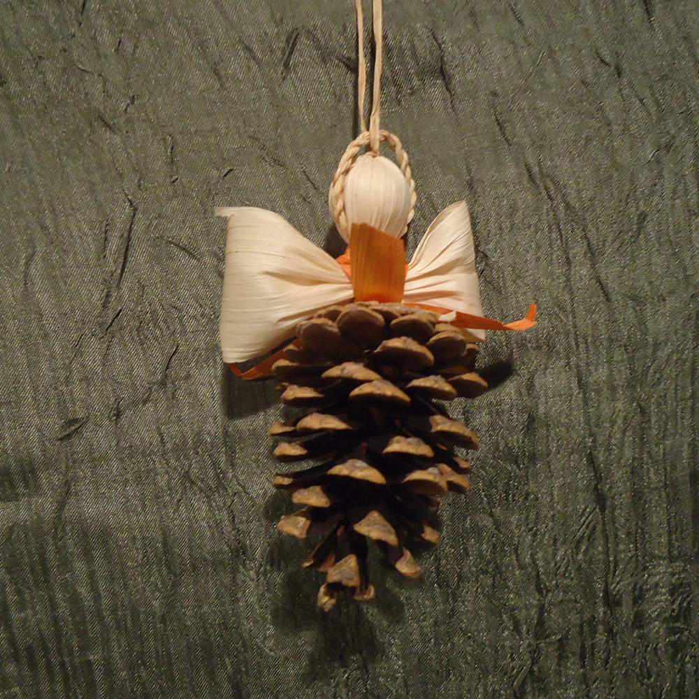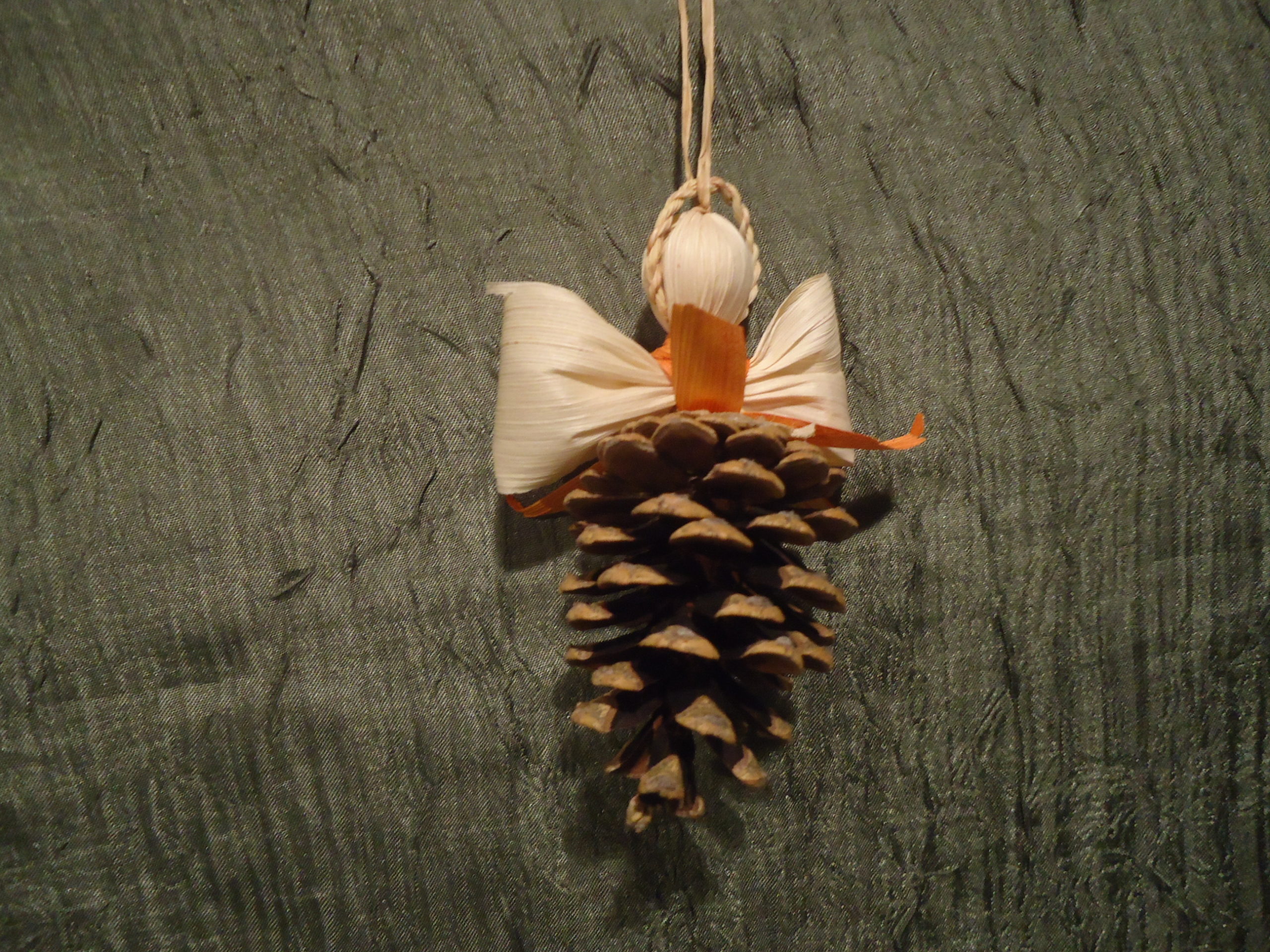 Tobozangyal karácsonyfadísz különböző színű ruhácskában (natúr, zöld, barna, piros, kék), mérete: cca. 12 x 7 cm.
