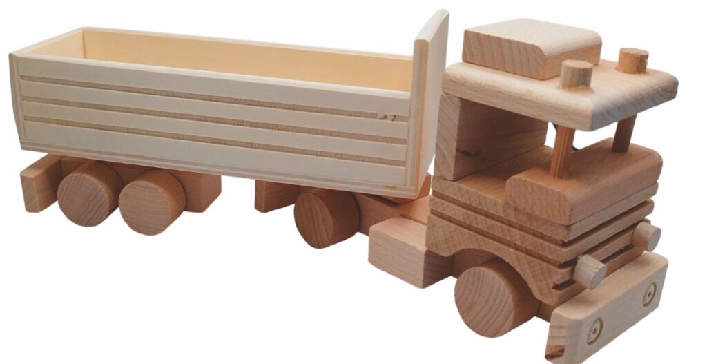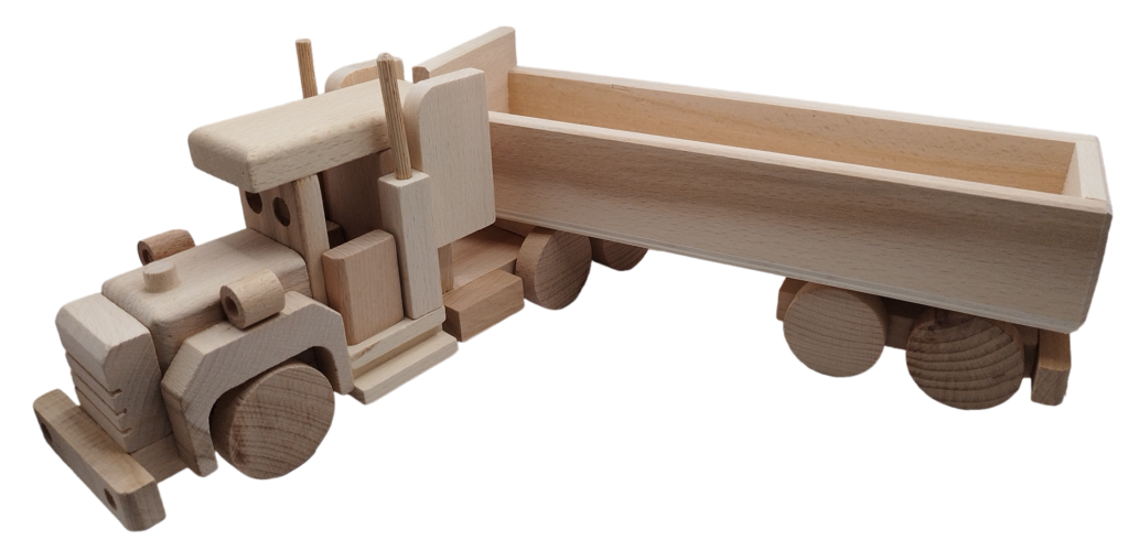 Fa játék nagy méretű teherautó pótkocsival