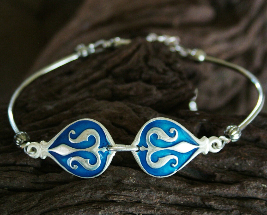 Kék liliomos karkötő (ezüstözött, tűzzománc)